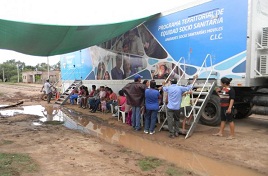 Locales | Con un promedio de atención de mil atenciones diarias, personal del Ministerio de Salud Pública continúa trabajando en los consultorios móviles de la cartera sanitaria nacional, ubicados frente al Centro de Integración Comunitaria (CIC) de El Sauzalito. Las especialidades en las que se brinda atención son Pediatría, Odontología, Oftalmología, Tocoginecologia, Cardiología, Laboratorio, Diagnóstico por Imágenes, Enfermería y Farmacia.