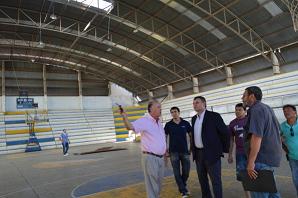 Locales | El presidente de Lotería Chaqueña Néstor Rolhaiser y el titular del Instituto del Deporte Raúl Bittel, recorrieron este lunes las obras de refacción que se ejecutan en el gimnasio techado y el estadio de fútbol del Don Orione Atletic Club de Barranqueras.