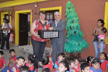 Locales | El vocal por el personal de Lotería Chaqueña, Carlos Torres, hizo entrega de un sistema de audio a las autoridades del Jardín de Infantes N° 31 "Jorge Alejandro Newbery" del barrio Italia de Resistencia, al cual concurren más de 200 chicos de diferentes barriadas.