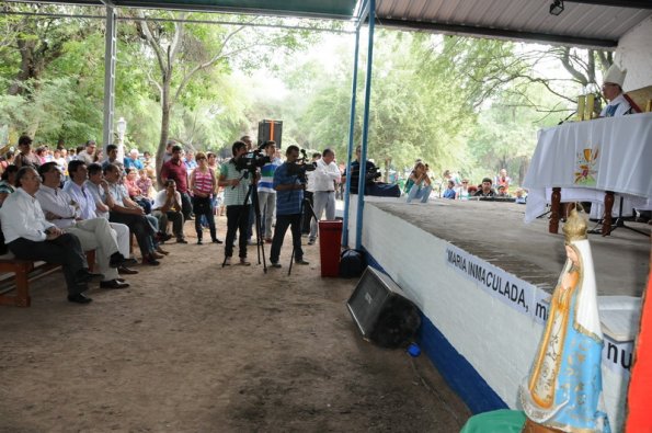 Locales | En el día de la conmemoración a la Inmaculada Concepción de María, el gobernador Juan Carlos Bacileff Ivanoff -junto al jefe de Gabinete de Ministros de la Nación, Jorge Capitanich-, participó este domingo 8 de la celebración religiosa en el Santuario de la Virgen de la Laguna, patrona del sudoeste chaqueño. La misa fue oficiada por monseñor Hugo Nicolás Barbaro, obispo de la Diócesis de San Roque, ante la presencia de unos 20 mil fieles que llegaron a Mesón de Fierro desde distintos puntos de la geografía chaqueña y de otras provincias.