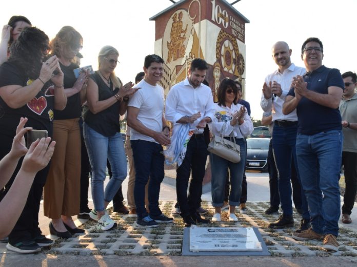 Locales | El intendente de Resistencia, Gustavo Martínez, acompañó a la Cámara de Comercio en la inauguración del monolito por los 100 años de la entidad en el Parque de la Democracia. La obra fue realizada por las muralistas Mónica Vakaruk, Licha Bernal y Daniela Gutman que resumieron en tres imágenes los hechos más relevantes de la centenaria entidad local mediante un mural escultórico esgrafiado.