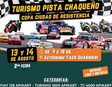 Locales | Los amantes del deporte motor podrán disfrutar este sábado 13 y domingo 14 de agosto de la 2ª fecha de la Copa Ciudad en el Autódromo “Santiago Yaco Guarnieri”, con entrada libre y gratuita para contemplar las carreras de las categorías del Turismo Pista Chaqueño.