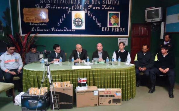 Locales | El subsecretario de Seguridad Vial, Juan Manuel Chapo entregó al intendente de Santa Sylvina, Gustavo Steven el equipamiento que permitirá la implementación en la localidad de la Licencia Única Provincial de Conducir.