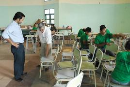 Locales | Más de 400 personas que realizan talleres en el marco del programa Jóvenes Con Más y Mejor Trabajo participan de jornadas en las que reparan el mobiliario escolar de distintos establecimientos educativos.