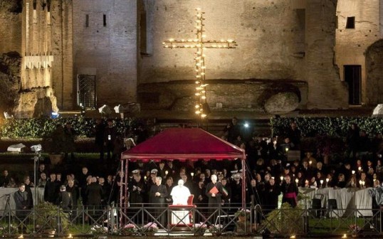 Locales | Tras encabezar el Vía Crucis rodeado de miles de fieles, el Papa realizó un mensaje en el Coliseo romano: "Una sola palabra debe quedar, la Cruz misma. Los cristianos deben responder al mal con el bien, cargando la Cruz como lo hizo Jesús", afirmó.