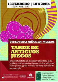 Locales | A partir de mañana, el Museo del Hombre Chaqueño inscribirá para su ciclo "Tardes de antiguos juegos" destinado a niños y niñas de 4 a 12 años. Las inscripciones, libres y gratuitas, se realizan de las 18 a las 20, en la sede del Museo, sito en Juan B. Justo 280.