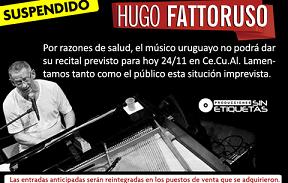 Locales | Producciones "Sin Etiquetas" informó la postergación del recital que el músico uruguayo debía brindar este sábado 24 de noviembre en el Centro Cultural Alternativo. Las entradas anticipadas serán devueltas en los lugares donde se adquirieron.