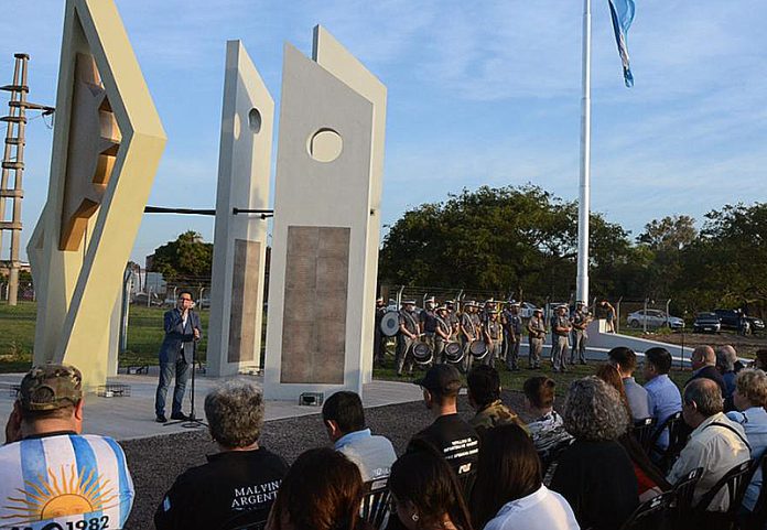 Locales | En la intersección de la avenida Malvinas Argentinas y la Ruta Nacional Nº11, el intendente Gustavo Martínez participó de la inauguración del primer monumento del país dedicado a ex combatientes que regresaron con vida de la Guerra de Malvinas. La obra se denominó "Memoria y Gratitud" y fue realizada por el escultor Manuel Campos.