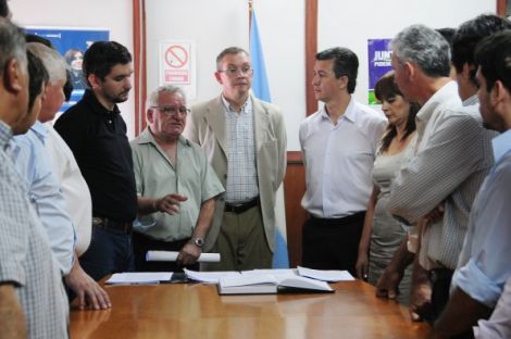 Locales | Eduardo Aguilar junto a su par de Gobierno, Juan Manuel Pedrini, presenció la entrega de las primeras credenciales a los gremios y sindicatos que se suman a la Ley de Controladores Laborales. El controlador acompañará al funcionario de la Dirección de Trabajo y confeccionará el acta en casos de irregularidades para dar lugar a un expediente y un plazo estipulado para que la empresa corrija la falta.