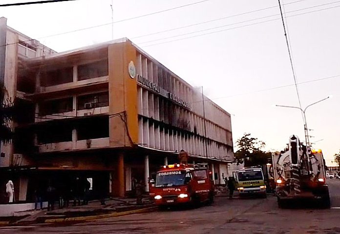 Locales | El Foro de intendentes del Frente de Todos reunidos este viernes 3 de junio en la Isla de Cerrito, expresaron su profunda solidaridad y acompañamiento al pueblo de Barranqueras, a la intendenta Magda Ayala y a todo su equipo de Gobierno ante esta triste situación que deben enfrentar con el incendio y derrumbe del histórico edificio municipal.