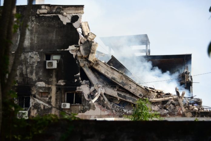 Locales | Así lo informó Oscar Sargenti, Jefe de Bomberos de la Policía, minutos antes de las 11. El colapso se dio en la parte trasera del segundo y tercer piso del edificio. Cabe recordar que el incendio se produjo poco después de las 5 de la mañana de este viernes. Diez dotaciones de Bomberos luchan contra las llamas que se propagaban desde el primer piso de la comuna portuaria. Se dio intervención a personal de la empresa SECHEEP quienes procedieron al corte de suministro eléctrico para comenzar las tareas específicas.