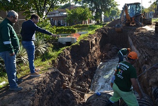 Locales | El intendente Gustavo Martínez supervisó este jueves las obras del conducto troncal de desagües pluviales de hormigón armado por calle Duvivier, entre Fortín Tapenagá y avenida Soberanía Nacional, que se ejecuta con fondos propios del municipio y tiene como principal función aliviar los problemas hídricos en la cuenca de Villa Libertad. La obra brindará una solución histórica a la problemática hídrica de un importante sector de la Ciudad.