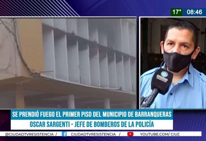 Locales | Oscar Sargenti, jefe de Bomberos de la Policía de Chaco, se refirió al foco de incendio desatado en el primer piso del edificio municipal de Barranqueras, en las primeras horas de este sábado. Valoró el rápido accionar para que fuera extinguido y remarcó que aun trabajan en tareas periciales para determinar la causa del mismo. “No hubo lesionados”, indicó.