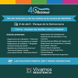Locales | Con el retorno de los desfiles cívico-militares como en los años pre pandemia, Resistencia rendirá homenaje a los héroes del Atlántico Sur, al conmemorarse el 2 de abril el 40º aniversario del Día del Veterano y los Caídos en la Guerra de Malvinas.