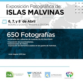 Con motivo de conmemorar el 40° Aniversario de la Guerra de Malvinas, la Universidad Nacional del Chaco Austral (UNCAUS) realizará en el Aula Magna de la institución, una exposición fotográfica en los días 6, 7, 8 y 9 de abril, de 8 horas a 12 horas y de 16 horas a 20 horas, con entrada libre y gratuita.