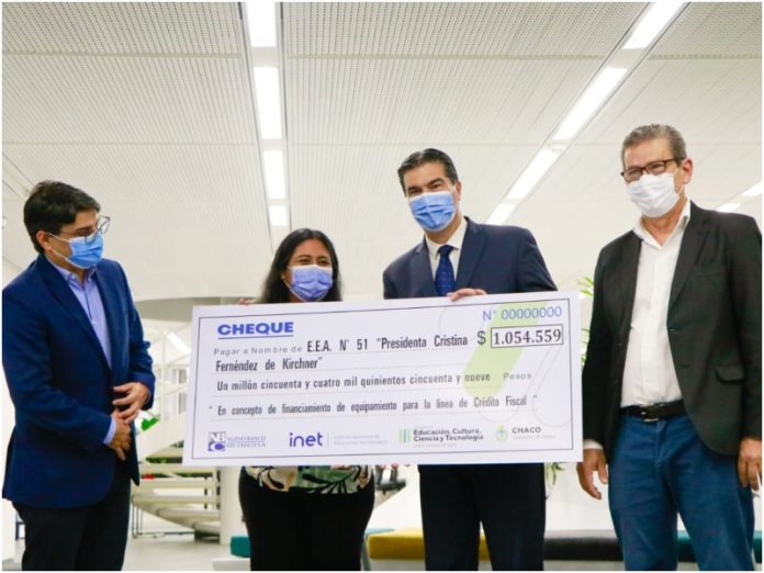 Locales | El gobernador Jorge Capitanich entregó este miércoles nueve cheques a escuelas técnicas destinados a proyectos patrocinados por el Nuevo Banco del Chaco. Los proyectos beneficiarán a 4.793 estudiantes de cuatro escuelas de Resistencia, una de La Verde, una de General San Martín, una de Taco Pozo, una de Charata y otra de Las Breñas, con una inversión total de $28.388.260.