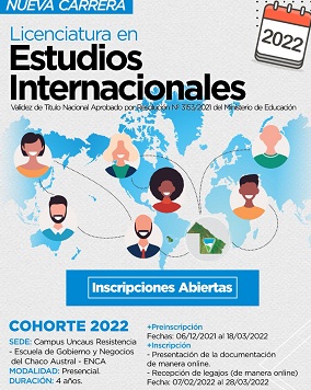 La Universidad Nacional del Chaco Austral (UNCAus) abrió inscripciones para esta nueva propuesta académica que se dictará de manera presencial en la ciudad de Resistencia, a partir del Ciclo Lectivo 2022. La misma será en la Escuela de Negocios Chaco Austral (ENCA) ubicada en Rivadavia N° 642.