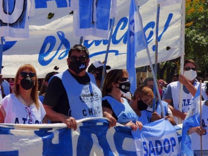 Locales | La notificación les llegó a la noche de este miércoles. Por ese motivo, desde ATECh, Utre Ctera y Sadop convocaron a los trabajadores de la educación a una concentración en la esquina de Casa de Gobierno para aguardar los resultados de la reunión.