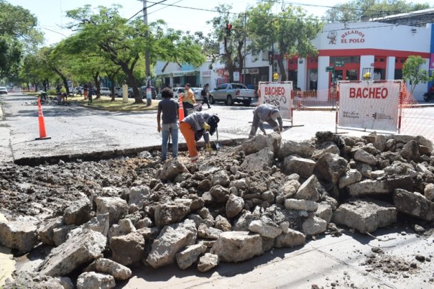 Con la reparación de 4 sectores deteriorados de avenida San Martín, entre calles Juan B. Justo y Obligado, Resistencia sigue solucionando los problemas de circulación vehicular a través de obras de bacheo.