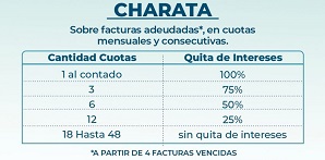 Locales | Derecho de conexión a la red de agua, moratoria con quita de intereses para pago contado o en 3, 6 y 12 cuotas y plan de pago en 18 y 48 cuotas sobre la deuda total.