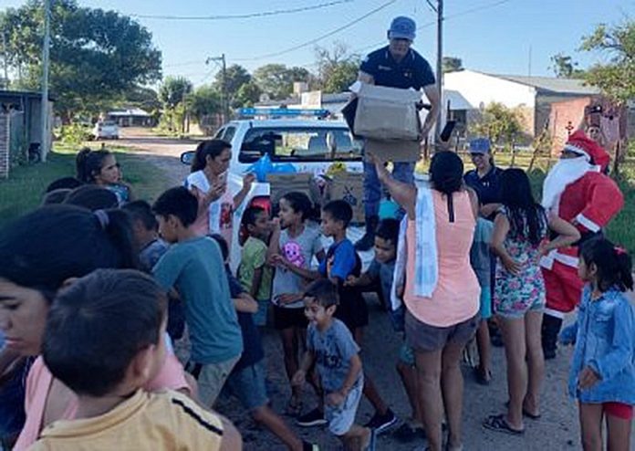 Esta vez, los empleados policiales de la Comisaría 'La Verde', entregaron regalos a diferentes merenderos tanto de esa localidad como de la vecina Lapachito.