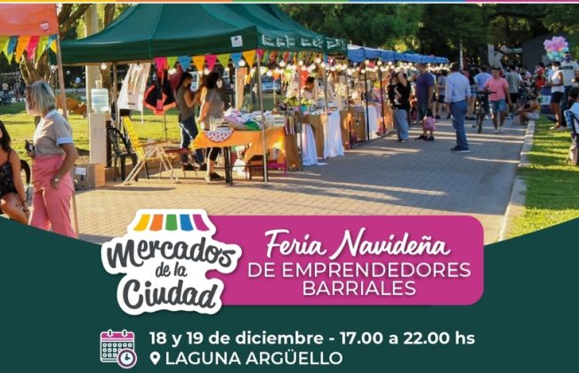 Locales | En el marco del programa de Mercados de la Ciudad, la Municipalidad de Resistencia desarrollará este sábado 18 y domingo 19 de diciembre, de 17 a 22, una nueva jornada de la Feria Navideña de Emprendedores Barriales en la Laguna Argüello.