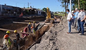 Locales | Durante la mañana de este martes, Gustavo recorrió las obras del conducto troncal de desagües pluviales de hormigón armado por calle Duvivier, entre Fortín Tapenagá y avenida Soberanía Nacional, que se ejecuta con fondos genuinos del municipio y que tiene como principal función aliviar los problemas hídricos en la cuenca de Villa Libertad.