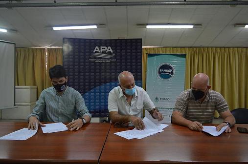 Locales | El convenio establece que especialistas del laboratorio de la Administración Provincial del Agua capaciten al personal técnico de la empresa prestataria de agua y cloacas para que se encarguen próximamente de los controles y análisis de muestras de la planta de tratamiento de líquidos cloacales de Resistencia y Gran Resistencia.