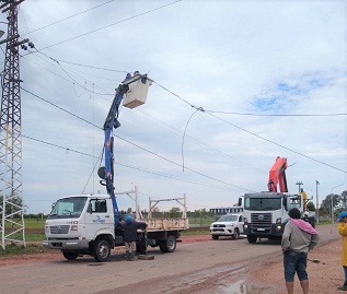 Más de 200 operarios equipados con 18 camiones grúas y 45 camionetas trabajan desde la madrugada. Al mediodía, el 99% del sistema en media tensión fue restablecido, con excepción de zonas rurales anegadas. Por el momento, solo restan atender reclamos individuales en la red de baja tensión.