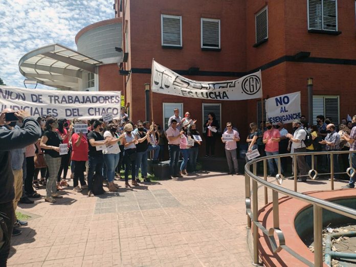 Locales | Este lunes se concretó una masiva concentración de trabajadores judiciales, frente a las Torres Civiles de Resistencia, la que fuera convocada por el Sindicato de Empleados Judiciales del Chaco, Unión de Trabajadores Judiciales del Chaco y Asociación Judicial del Chaco.