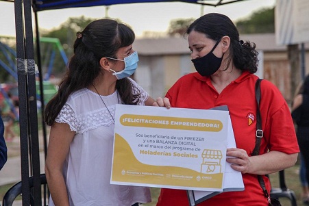 Locales | El Gobierno provincial entregó 20 freezer y 20 balanzas digitales a mujeres que tienen sus heladerías gracias al convenio entre el Ministerio de Desarrollo Social y la empresa Helacor SA. El proyecto apunta a expandirse a otras localidades del interior de la provincia