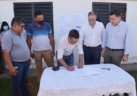 Locales | Continuando con la implementación del programa de descentralización institucional Resistencia Abierta, el intendente Gustavo encabezó este jueves la firma de contrato y el acto de inicio de obras de la ampliación y refacción integral del Centro Comunitario Municipal (CCM) de Villa Palermo II, que se ejecutarán con fondos genuinos del Municipio y gracias al esfuerzo de todos los y las contribuyentes. Con esta obra, se da inicio a la segunda etapa de refacciones y ampliaciones de otros cinco centros comunitarios en distintos puntos de la Ciudad, con los que la actual gestión comunal pretende avanzar con un proceso de fortalecimiento y jerarquización del personal comunal en beneficio de los vecinos y vecinas de toda la zona de influencia.