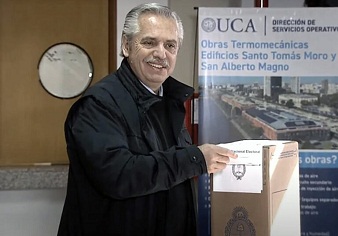 Nacionales | El presidente Alberto Fernández destacó este domingo que la jornada electoral "es un día importante para la democracia que este año cumple 40 años", y dijo que confía "en que todo se haga en orden y paz", tras votar en la sede de la Universidad Católica Argentina (UCA), ubicada en el barrio porteño de Puerto Madero.