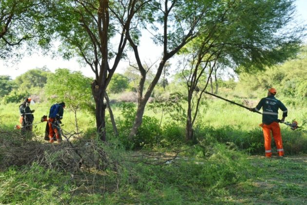 Locales | En el barrio 100 y 40 Viviendas de la zona oeste, la Municipalidad de Resistencia efectuó un operativo de limpieza general en espacios verdes linderos al riacho Arazá. Estos trabajos están destinados a mantener en buenas condiciones las áreas de recreación y el ambiente donde los vecinos se desenvuelven.
