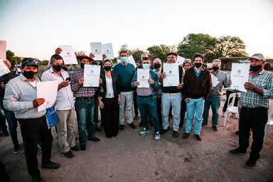 Locales | La entrega benefició a 29 familias rurales de la zona en el marco del plan provincial de titularización. El gobernador enfatizó en su discurso que "la tierra es de quien la trabaja", ratificando el compromiso de la provincia de garantizar el acceso a la tierra. La pavimentación de las cuadras fue financiada por Vialidad Provincial.