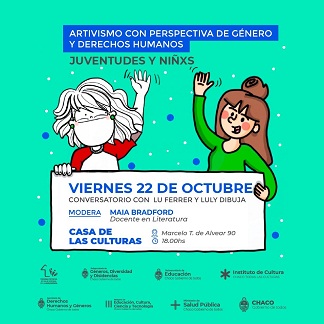 Se trata de dos conversatorios, el 21 y 22 de octubre, con la participación de las ilustradoras feministas Romina Ferrer y Luciana Ruiz. La actividad busca generar un diálogo informal sobre roles de género, sus vínculos con la sociedad y las desigualdades.