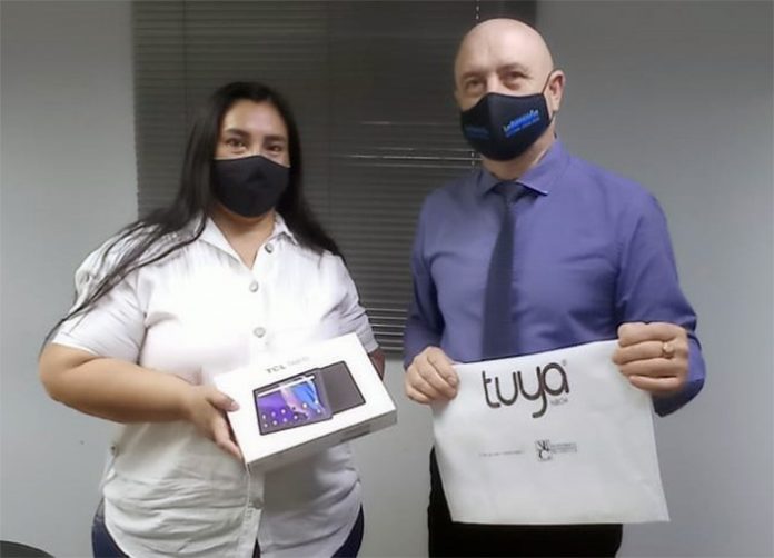 El presidente del Poder Legislativo, Hugo Sager junto al ministro de Educación, Aldo Lineras, acompañó el acto de entrega de herramientas a la Escuela de Educación Técnica N°39 de Puerto Tirol, las que contribuirán a la mejora de los diversos contextos en los que se llevan a cabo los procesos de enseñanza y aprendizaje, que permitan efectivizar una educación técnica de calidad.