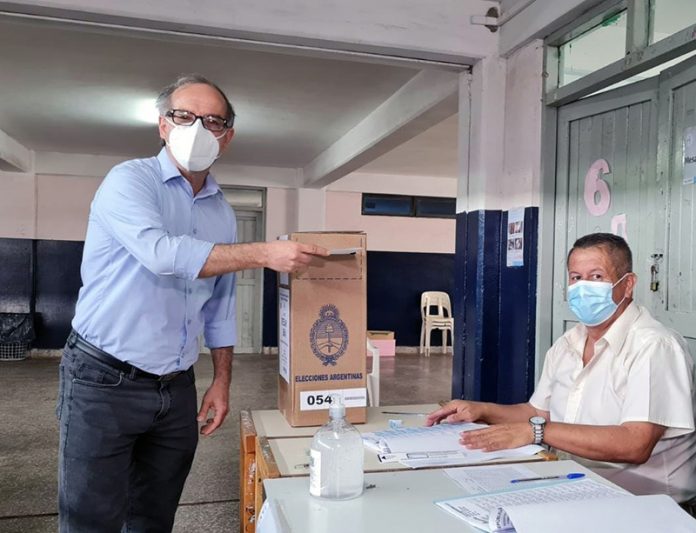 Locales | El intendente de Resistencia, Gustavo Martínez, votó cerca de las 16.30, en la en la mesa 688 de la EGB N° 400 “San Fernando” del barrio San Cayetano. Tras sufragar, agradeció a todos los ciudadanos que votaron, a las fuerzas políticas que participaron, a los fiscales, a las autoridades de mesa y a las fuerzas de seguridad por desarrollar comicios con normalidad en un contexto de pandemia.