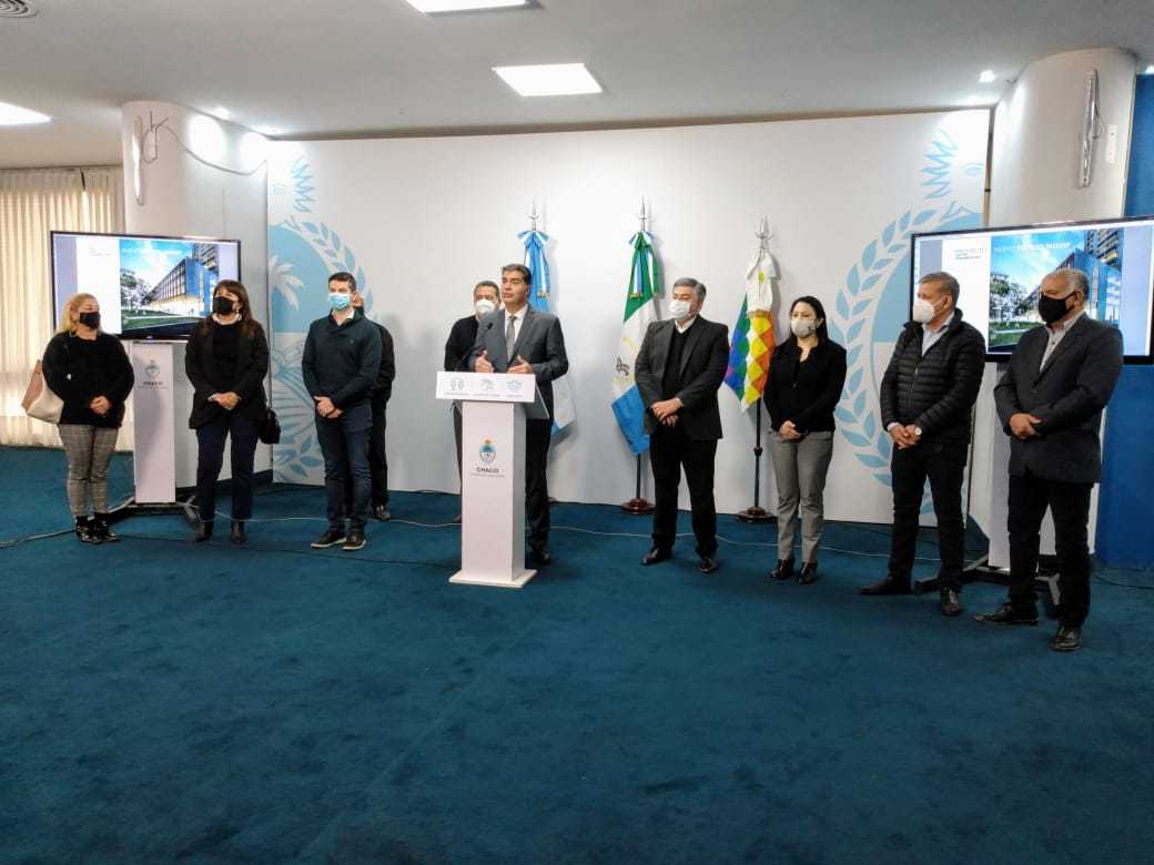 Locales | El gobernador Jorge Capitanich, acompañado de los presidentes del Instituto Provincial de Desarrollo Urbano y Vivienda y del Instituto de Seguridad Social, Seguros y Préstamos, Diego Arévalo y Antonio Morante, respectivamente, oficializó en la mañana de este martes la construcción de departamentos y nuevas oficinas de la obra social en el predio del exprediátrico. La obra, que se ejecutará mediante la firma de un convenio entre Nación y provincia, demandará una inversión superior 2.700 millones de pesos.