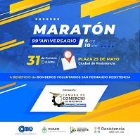 Este jueves, en conferencia de prensa, lanzaron la Maratón 99° Aniversario de la Cámara de Comercio de Resistencia bajo el lema “Camino al Centenario”. La misma se correrá el próximo 31 de octubre a las 8.30 horas desde la Plaza 25 de Mayo, a total beneficio de Bomberos Voluntarios San Fernando Resistencia.