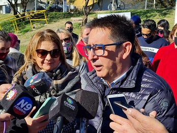 Locales | El intendente Gustavo Martínez dialogó con medios de prensa en el marco de la inauguración, en el Paseo Costanero, de una nueva obra del Centro Cultural Ñachec y el Taller Tesela Pink, "una hermosa obra que es el descenso hacia el río Negro, de todos los vecinos y vecinas".