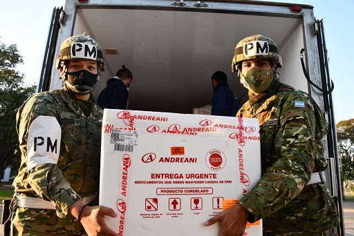 Locales | En un traslado aéreo, el Ministerio de Salud Pública provincial junto al Ejército Argentino, acercó 450 dosis del primer componente de la Sputnik V para ser aplicada en la localidad.